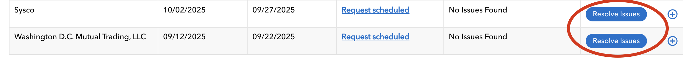 Once you click the blue “Resolve issues” button from the summary or digest email, we’ll walk you through the various options to get back in sync with your vendor.