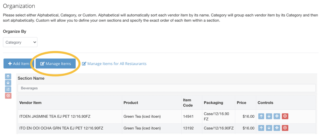 We’ve made it even easier for you to configure your order guides with the right items and packaging! In our new “Manage Items” page, you’ll see all the items for the selected vendor. With bulk actions, you can add, remove, or reorganize multiple items on your order guide at once, plus easily search for an item in the search bar.