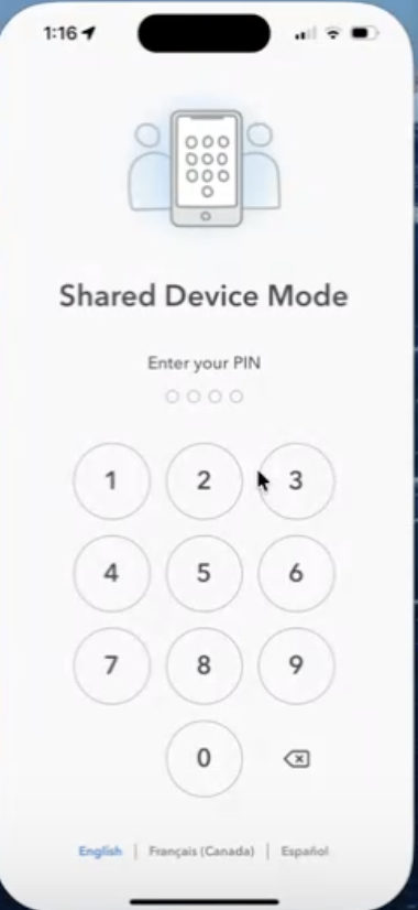 - Staff will enter the 4-digit PIN to access allowed features
