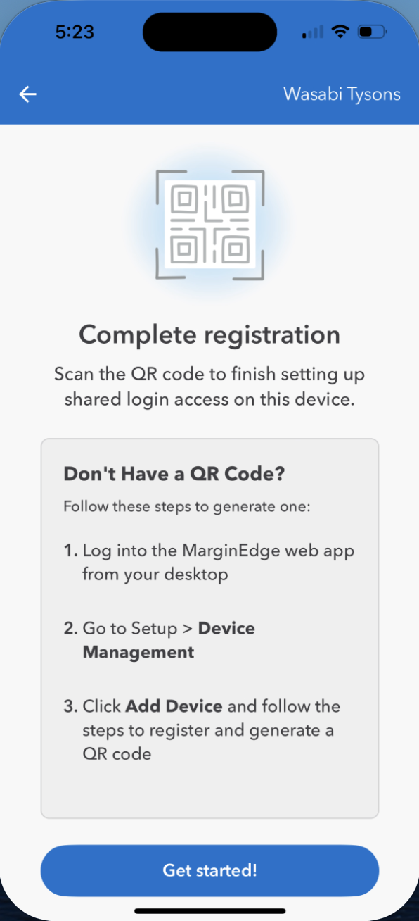 Note: You’ll need MarginEdge Admin or Restaurant Admin permissions to set up a shared device!