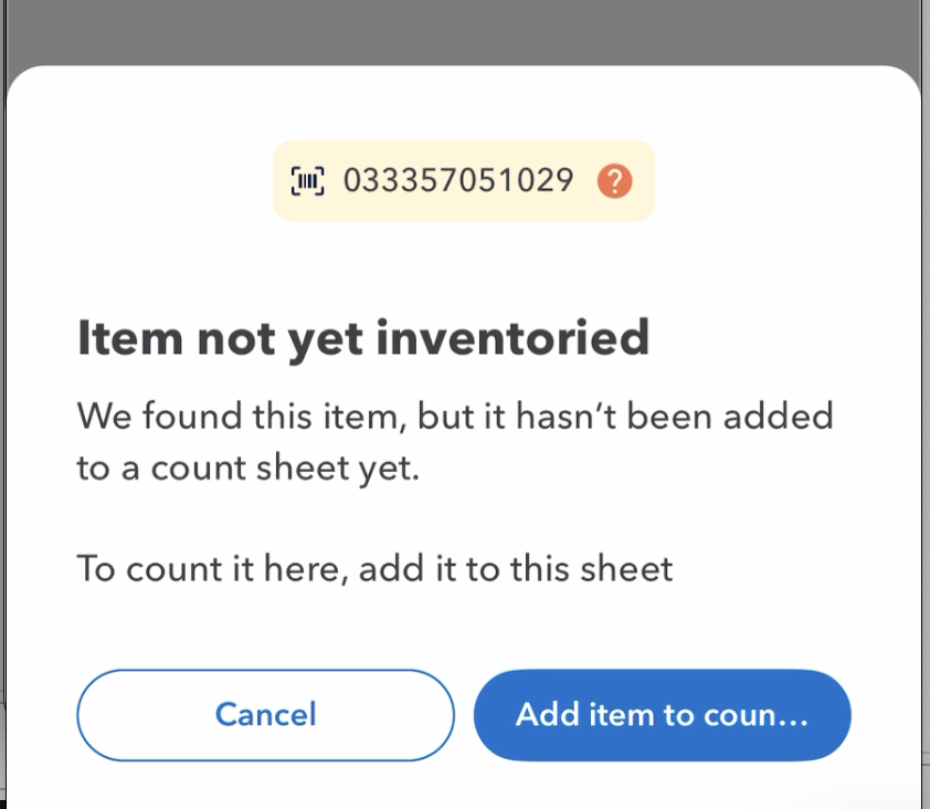 If the barcode is recognized, but the item is not on the current count sheet, you can add that item to the count sheet.