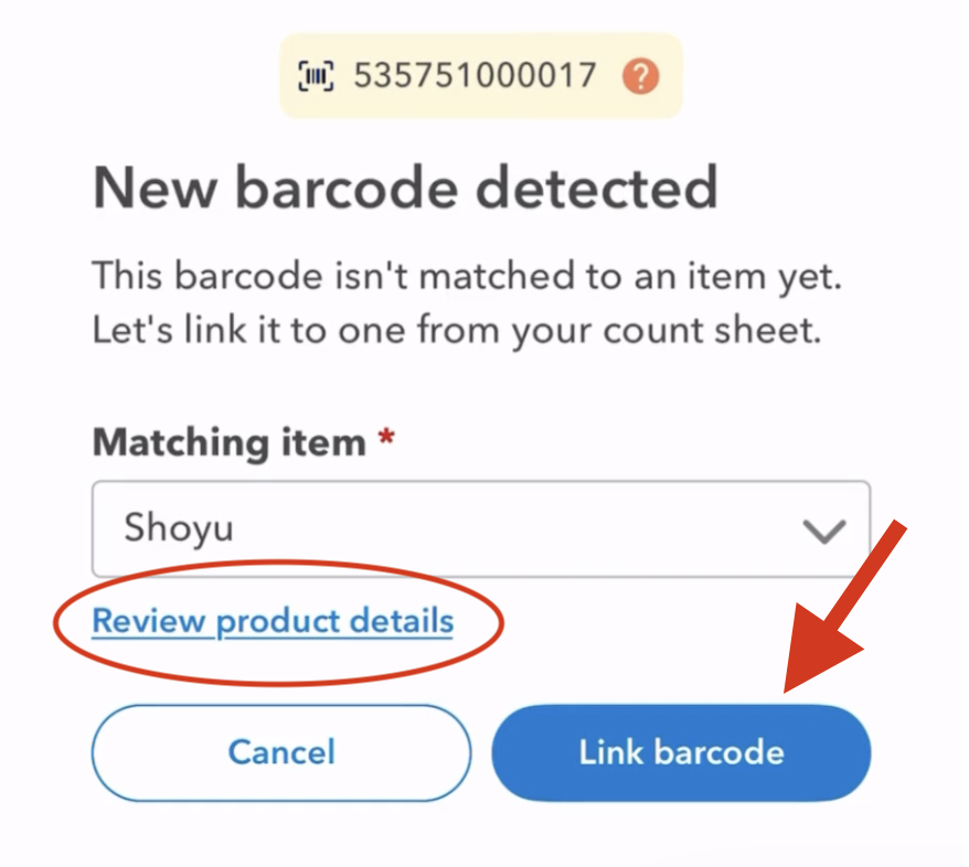 If the barcode isn’t recognized, you’ll be prompted to link it to an item:
