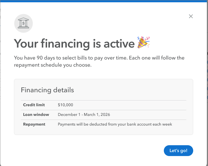 3. Select Invoices to Finance Choose which vendor bills you'd like to "Pay with financing". You can finance invoices directly from your Bill Pay dashboard.