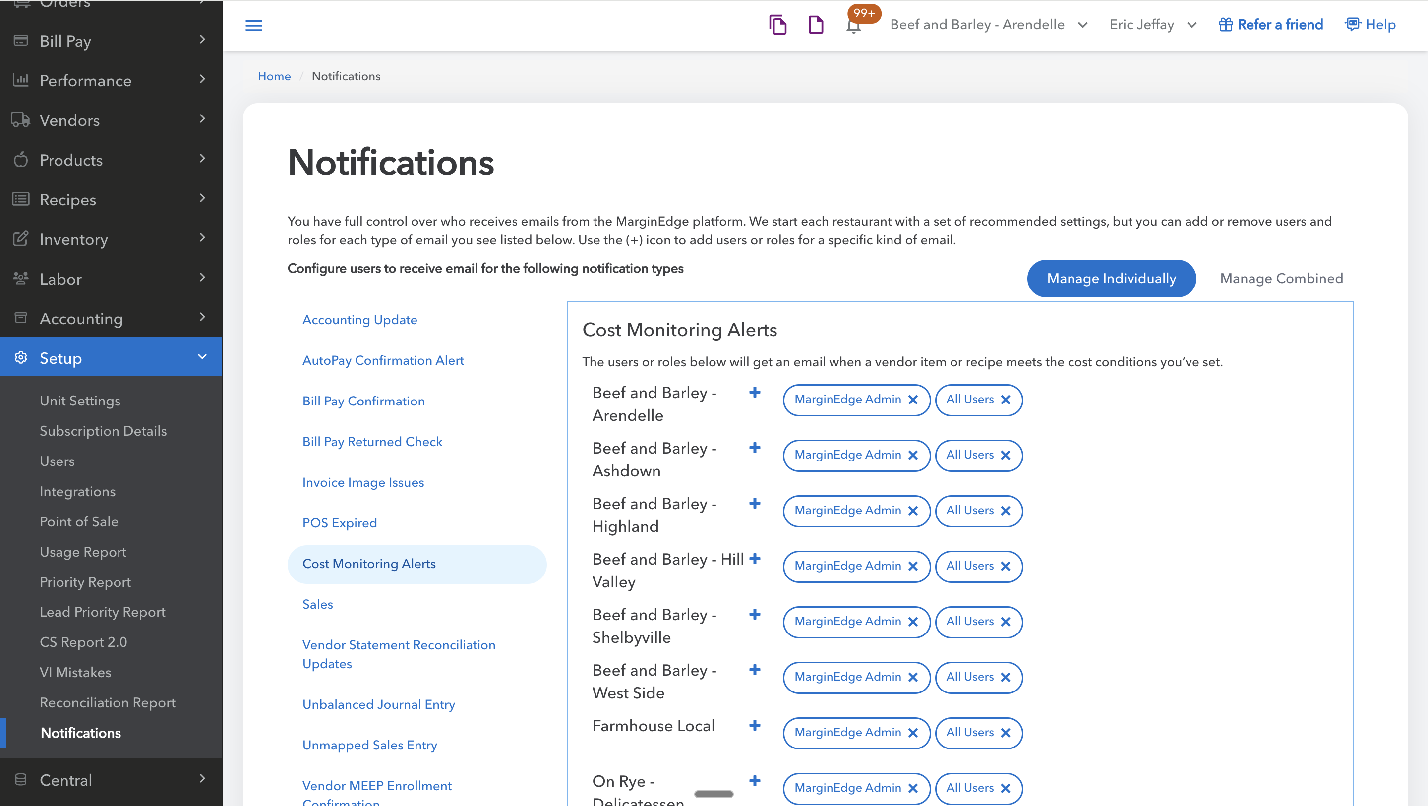 Configurez des alertes pour recevoir une notification lorsque les coûts d'assiette augmentent ou diminuent de façon inattendue.